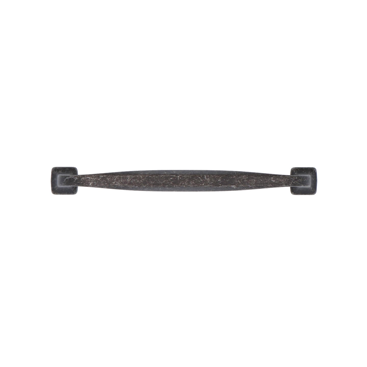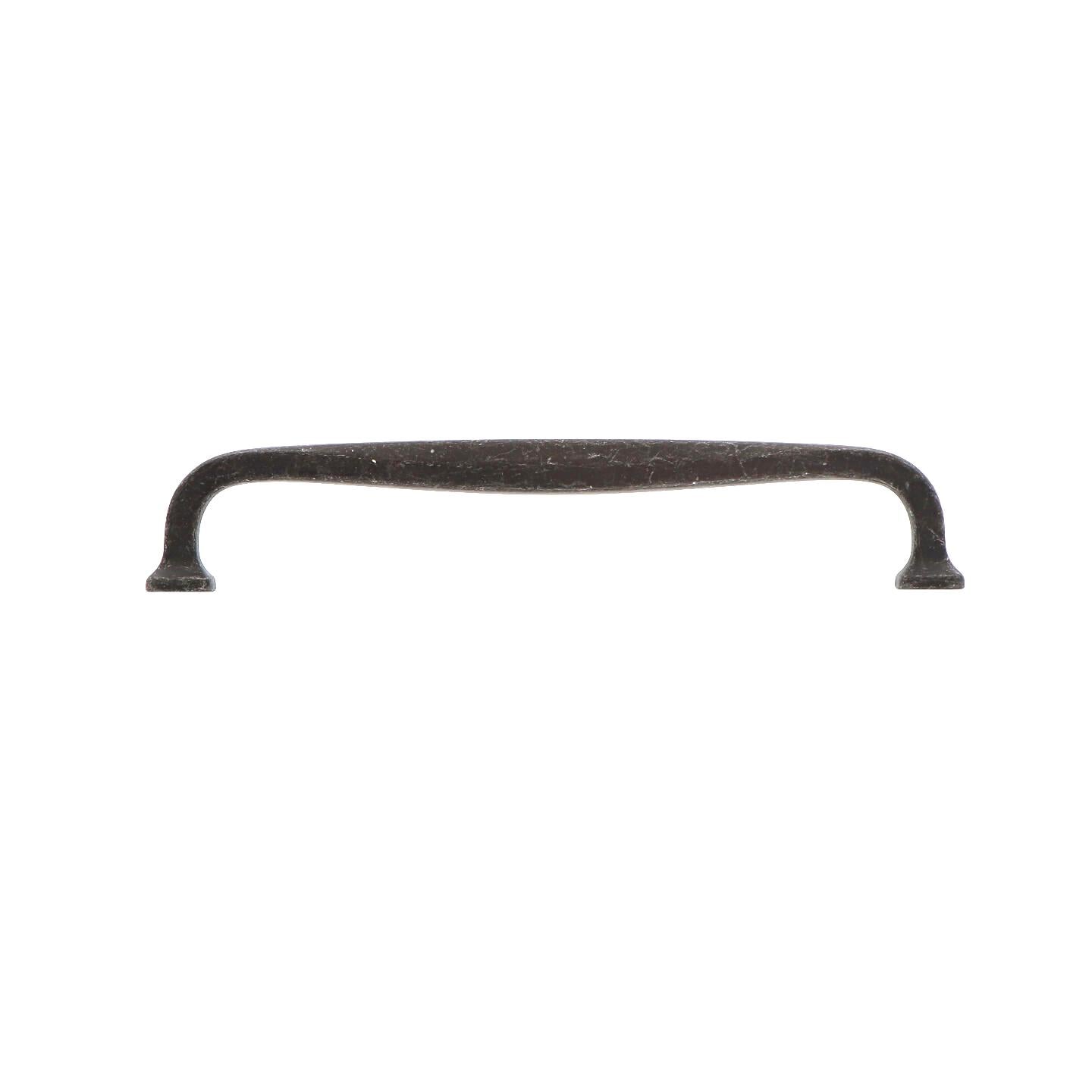 Vintage black iron cabinet pulls in an industrial barn door style with a rustic patina finish. Available in 3-3/4", 5", and 6-5/16" center-to-center sizes, ideal for farmhouse, rustic, and industrial décor.