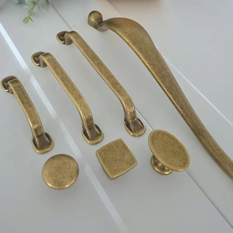 Transitional cabinet pulls finished in Antique Brass with Vintage Patina, crafted in Italy. Their clean lines, subtle curvature, and warm finish make them a versatile choice for modern, farmhouse, and vintage-inspired interiors.