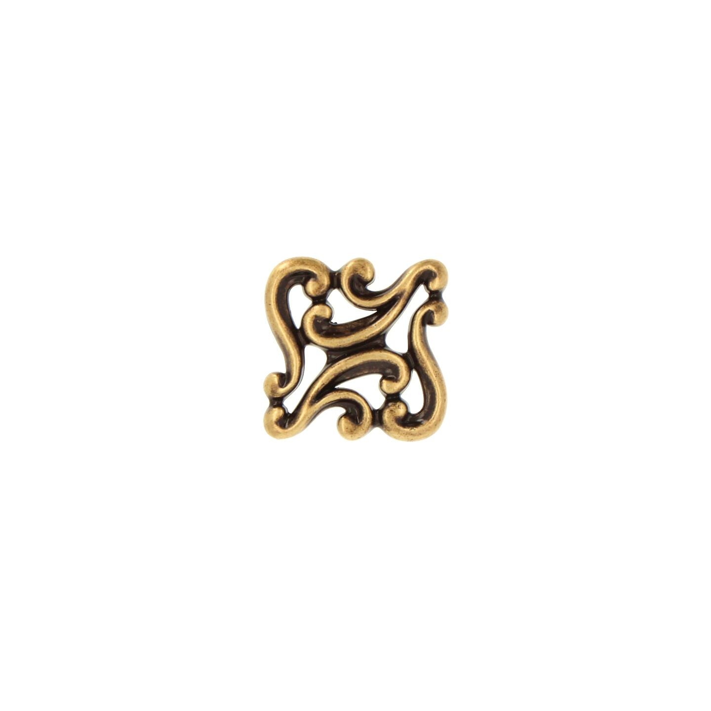 Decorative French Provincial cabinet knob in Antique Brass with Vintage Patina. Designed and made in Italy, this ornate knob adds timeless elegance to kitchen cabinets, dressers, and vanities. Ideal for traditional, Victorian, and farmhouse interiors.