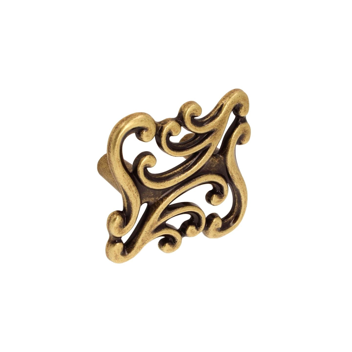French Provincial Large Ornate Cabinet Knob – Antique Brass with Vintage Patina | HH282