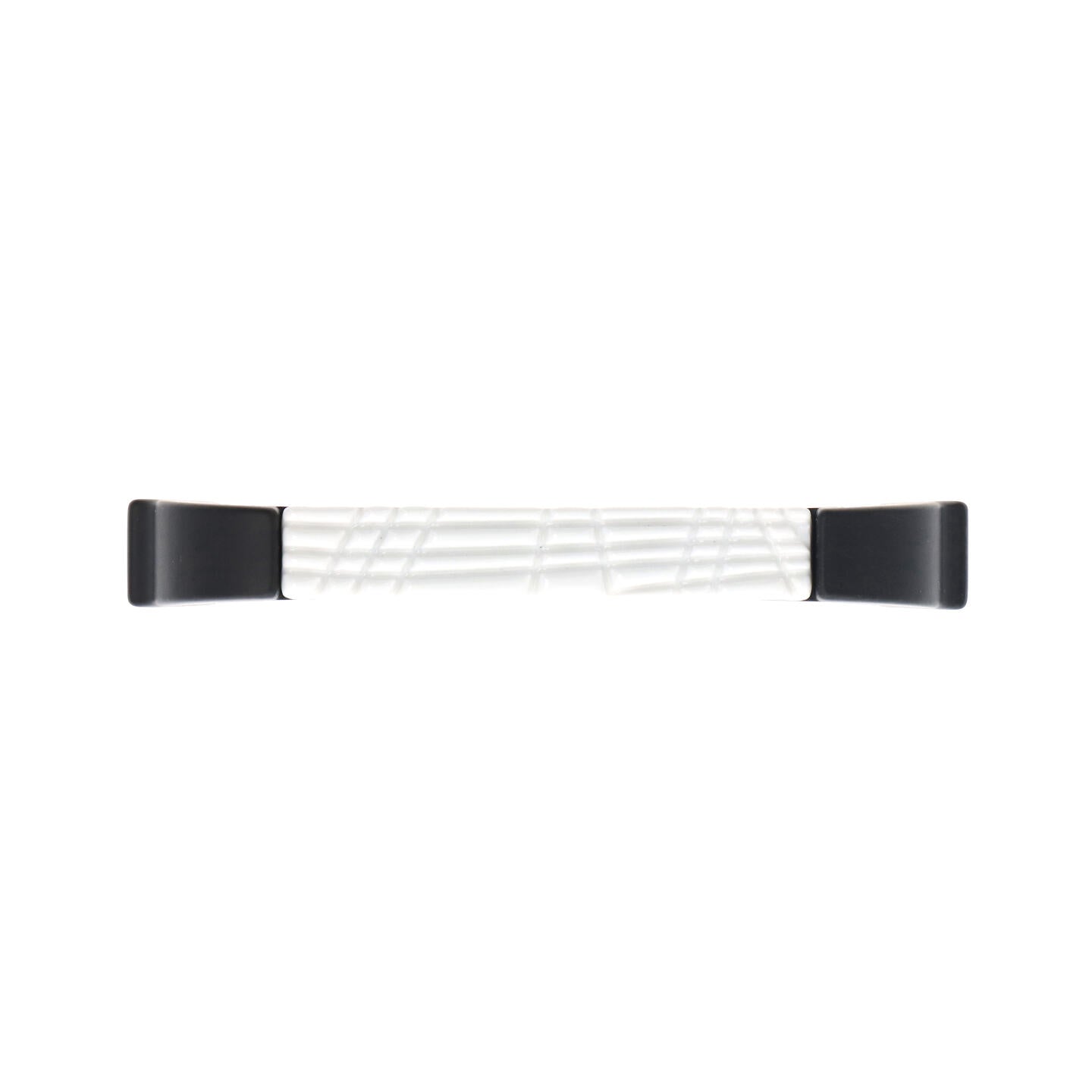 Made in Italy black and white ceramic cabinet pull with matte black base and porcelain center. 5" center-to-center size. Matching round knob available.