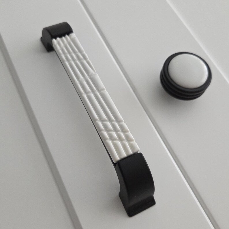 Featuring a matte black zinc alloy base and a smooth white porcelain center, this Italian-crafted handle brings modern farmhouse elegance to kitchens, bathrooms, and furniture.