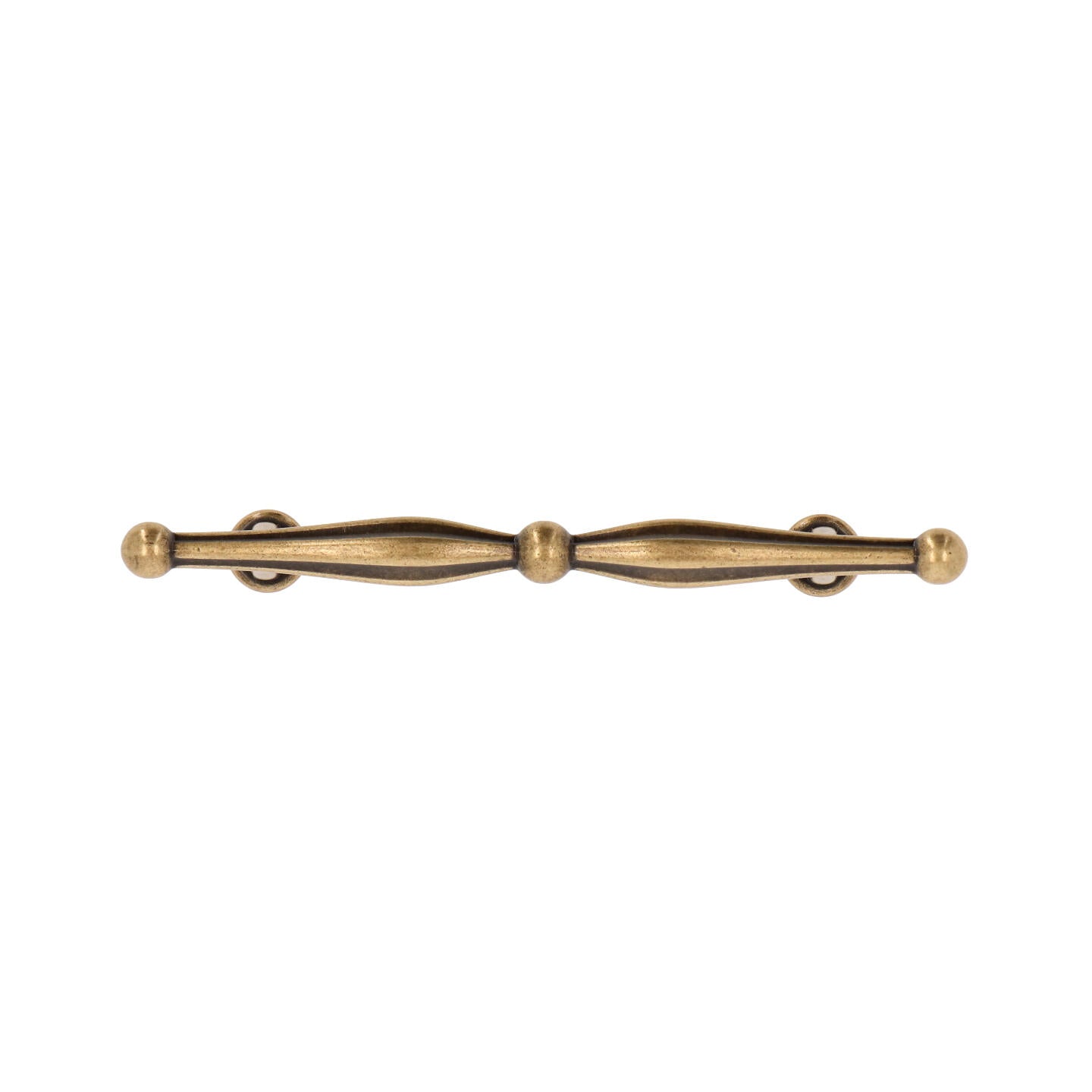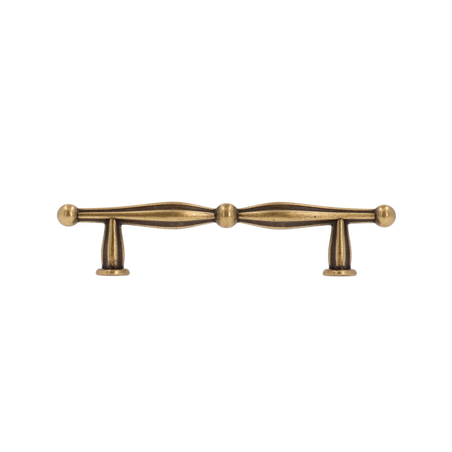 Vintage spindle T-bar cabinet handles and T-knob in Antique Brass with Vintage Patina. Available in 3-3/4", 5" CTC, and matching knob. Italian-made hardware for kitchens and furniture. Add Old-World charm and refined detail to your cabinetry with our Vintage Spindle T-Bar Collection, handcrafted in Italy.